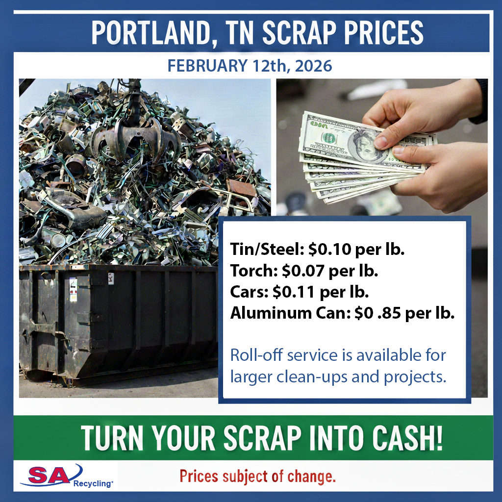 SA Recycling is your one stop shop recycling center. We pay top prices for metals. Some of the metals we recycle include steel, aluminum, copper, tin, appliances, junk cars, cans, and many other types of scrap metal. For large commercial amounts of metal we provide roll off services. So whether you are an individual or a company, call us now for pricing on your scrap metal.